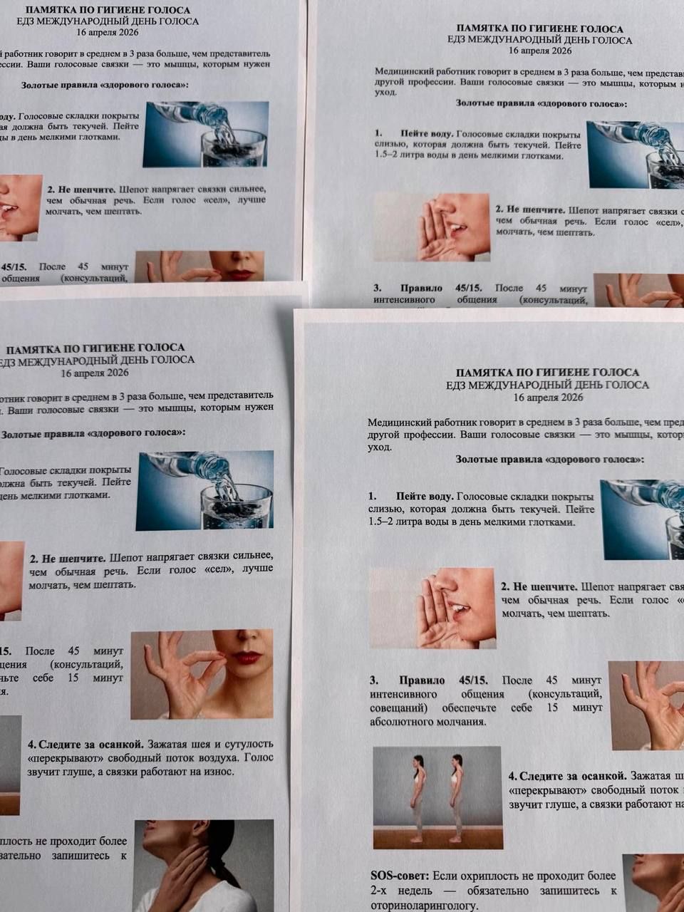 ✅ Разработали полезные памятки по гигиене голоса для пациентов и коллег. В них — секреты того, как сохранить связки здоровыми.