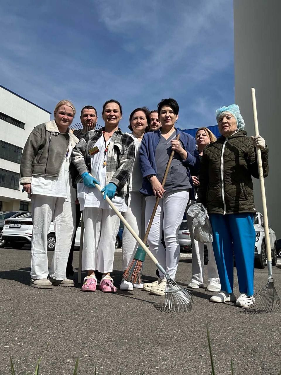На этой неделе в нашей 5-й городской клинической больнице по-настоящему жарко, и дело не в погоде! В рамках Республиканского субботника вся наша команда сменила халаты на рабочую одежду, чтобы сделать территорию любимой клиники еще уютнее и красивее.